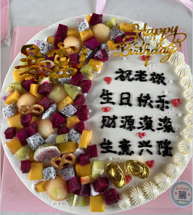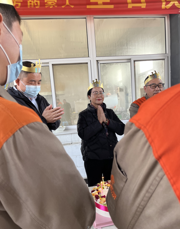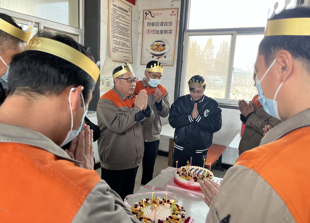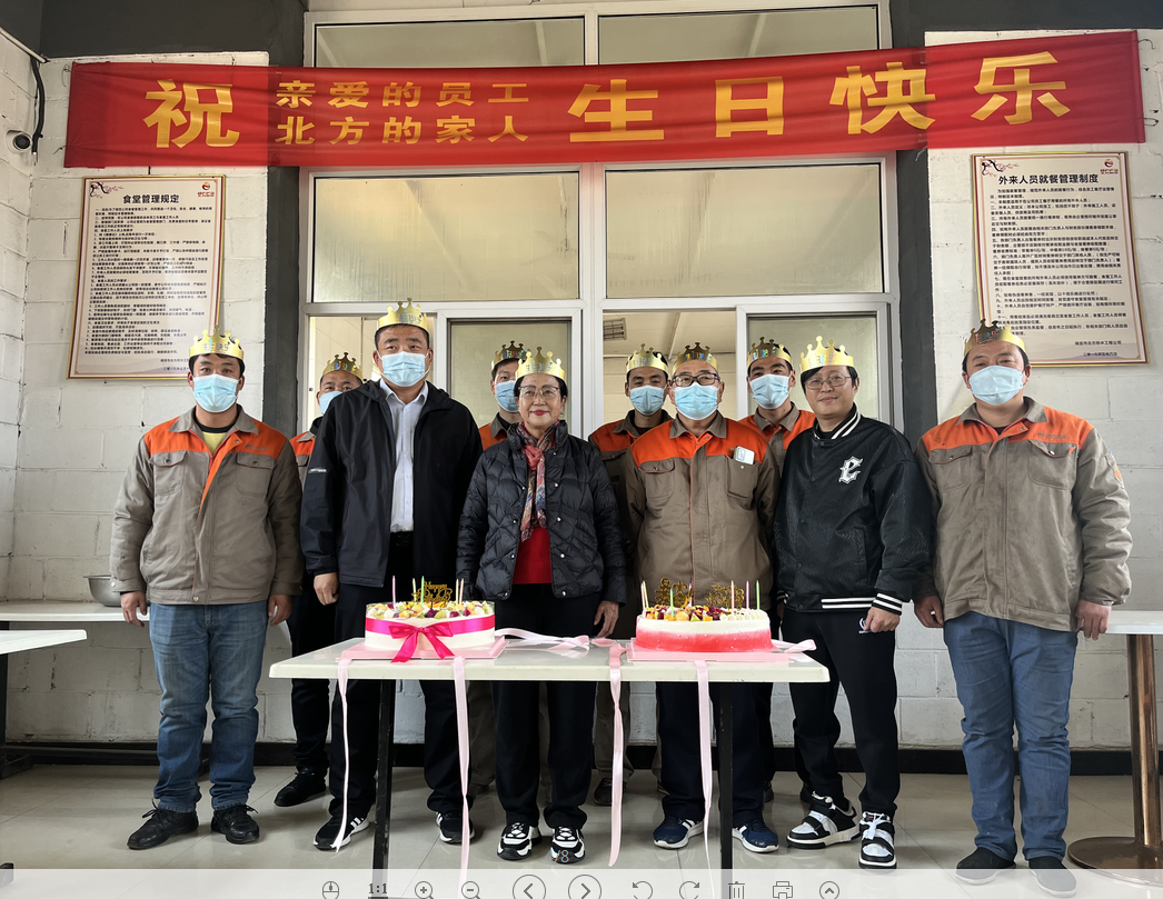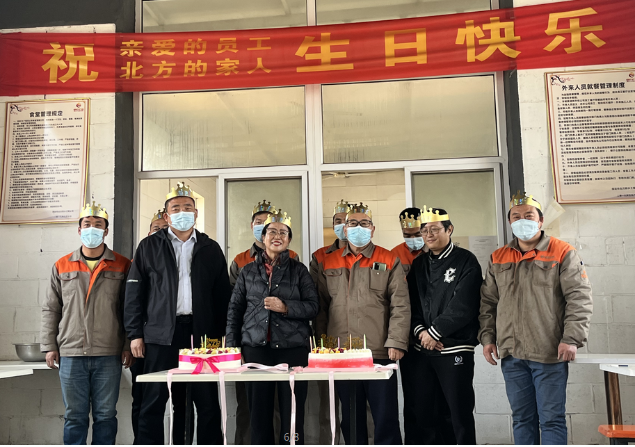 公司食堂準(zhǔn)備了豐盛可口的飯菜,公司準(zhǔn)備了生日蛋糕,董事長(zhǎng)發(fā)表講話,并為過生日的同志送上生日祝福,公司員工聚在一起唱生日歌,分享生日蛋糕。大家都覺得十分幸福,因?yàn)槲覀兪窍嘤H相愛一家人。
